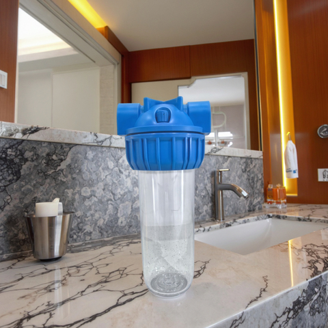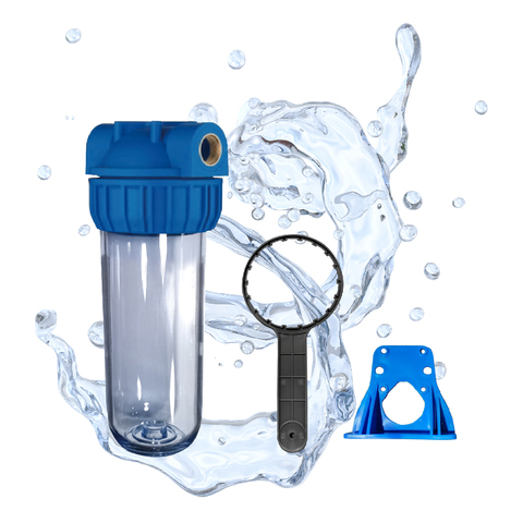 Rosca de latón de plástico azul de cuerpo transparente de alta calidad de 10 pulgadas para purificación de Hotel doméstico carcasa de filtro de agua estándar