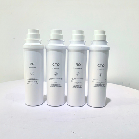 Purificador de agua RO de 4 etapas Filtros de repuesto de ósmosis inversa PP + CTO + RO + CTO